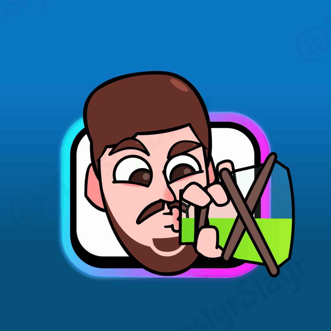 This is a Clash Royale emote of KFC Clash drinking the Goblin Curse and transforming into a bearded goblin.