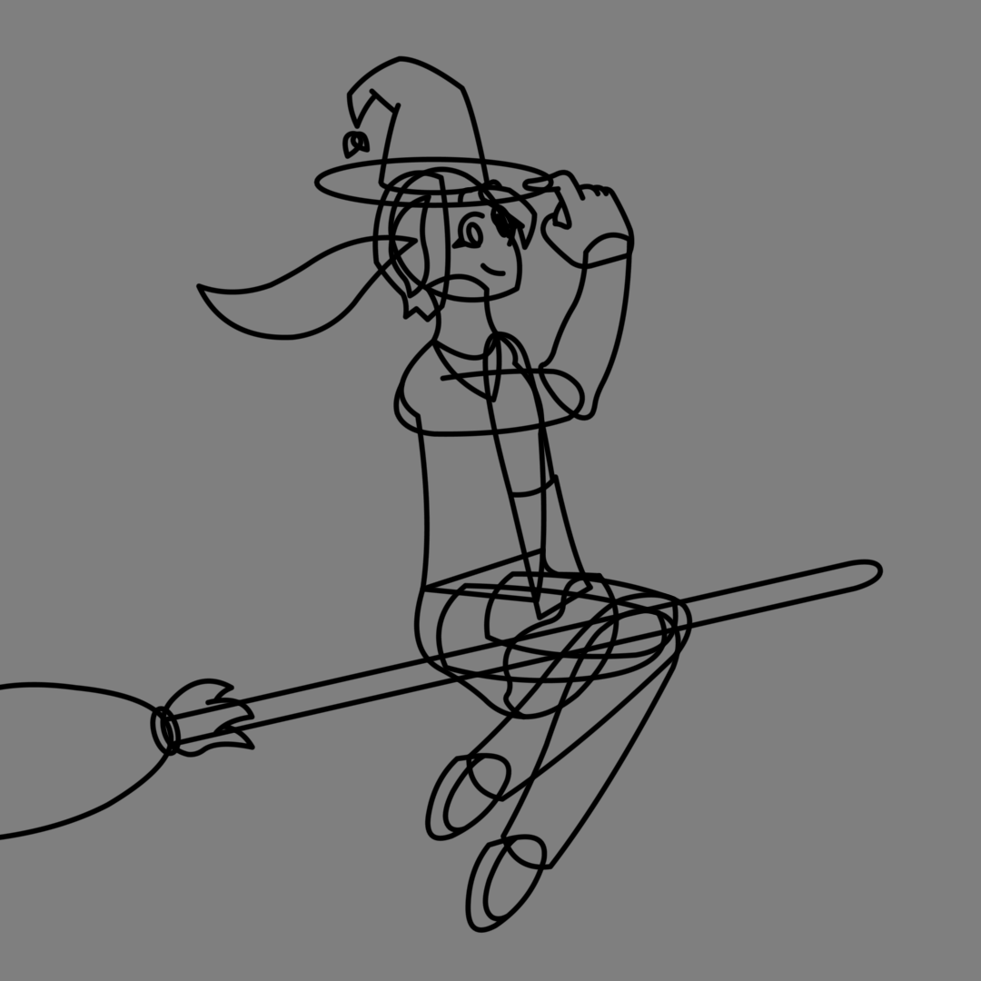 My looping animations tend to have the character floating in place. Make good use of animation principles to breathe life into the rig. We love circular motion and follow-through in this household! Some of the motion was automated, like the floating matcha leaves on Nicole's hat. I also touched up the remains of the line art.
