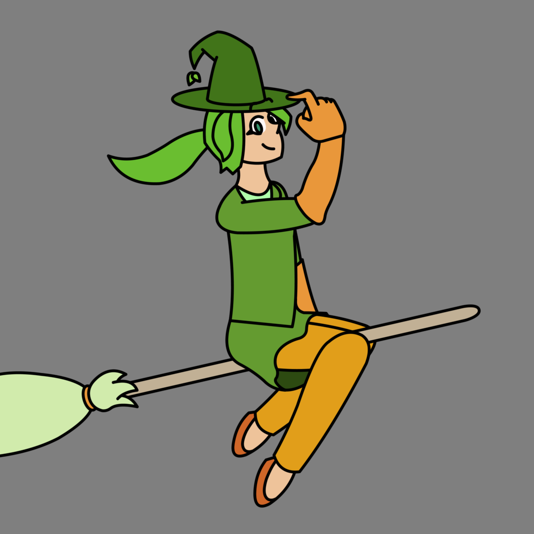 This is Nicole Ting from the hit game Rhythm Doctor, dressed as a matcha witch for Halloween :)